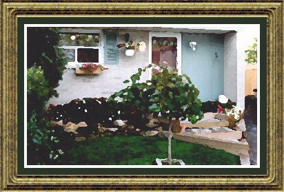 The above picture, which appears to be a watercolour painting, is actually a computer enhanced photograph of my house. My dear friend, Joey, presented this picture to me one night when we were talking online. It was a complete surprise..and just that fact alone will ever keep him in my heart.