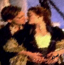 The graphic which appears above the How Do I Love Thee verse, depicting Titanic lovers Jack and Rose in their embrace on the ship's bow, was created by the very talented Mark Kent. Mark has full and clear copyright to the work and has graciously granted me permission to use this stunning graphic here. He has created the graphic using Paint Shop Pro 5 (my absolute favourite program), in the style of Renoir. You can download it using the link here, but please do write Mark for his permission. I am sure you will agree that the graphic is positively beautiful..